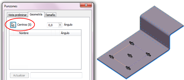 La cantidad de ejemplares de la herramienta de punzonado se ha añadido al cuadro de diálogo Punzones, ficha Geometría.