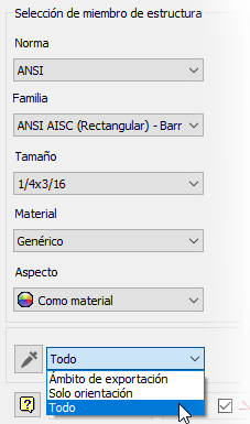 Ahora se puede copiar información de miembros de estructura existentes cuando se utilizan los comandos Insertar y Cambiar miembro. Seleccione el cuentagotas en el cuadro de diálogo para permitir la copia de propiedades y, a continuación, seleccione un miembro. Puede optar por copiar únicamente la información de miembro de estructura, solo la orientación o ambas.