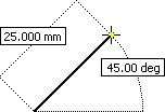 - En el cuadro de entrada resaltado, introduzca un valor: de longitud o ángulo, de diámetro, de radio, etc., en función de la geometría.