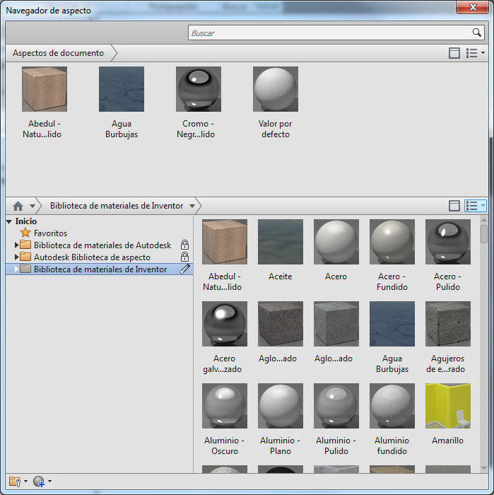 La biblioteca de aspectos de Autodesk, que se instala con un producto o conjunto de productos, proporciona un surtido de activos de aspecto. Los productos como AutoCAD, Inventor y Revit comparten esta biblioteca de solo lectura para garantizar una experiencia de visualización más coherente entre los productos.