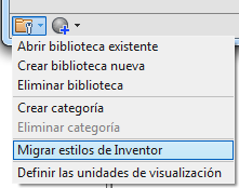 - En la barra de herramientas del navegador, haga clic en Migrar estilos de Inventor.