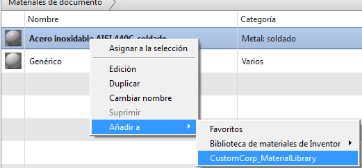 - Haga clic con el botón derecho en el nodo Bibliotecas de materiales y seleccione Añadir biblioteca.