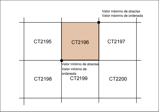 El prefijo que se repite se genera a partir del valor 100 <unidad de longitud > de las coordenadas: tres dígitos del valor de abscisa y tres dígitos del valor de ordenada, de modo que el prefijo siempre es un valor de seis dígitos.