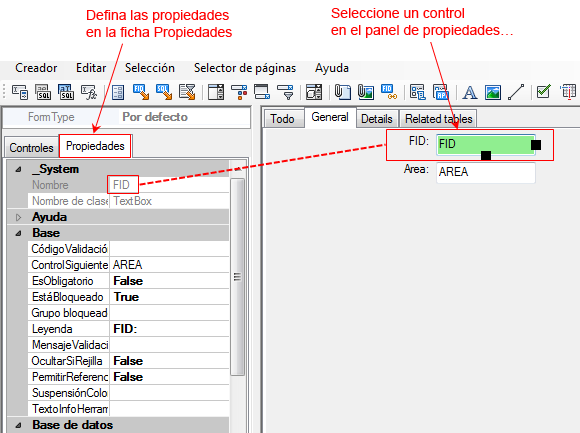 Use la ficha Propiedades para definir las propiedades de cada control.