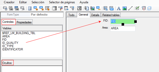 Use la ficha Controles para definir los atributos de la base de datos y los controles que se muestran en el formulario.