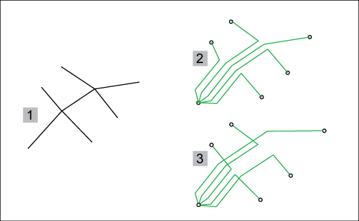 Por ejemplo, utilice la opción Segmentos menos comunes en primer lugar (3), si todos los puntos iniciales y finales de los conductores se encuentran en la línea principal.