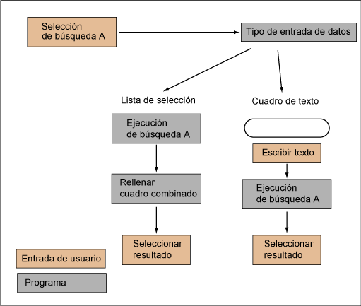 En búsquedas secuenciales, el tipo de entrada de datos especifica cómo comunica el usuario las siguientes sub-búsquedas. La diferencia principal está en la ejecución de la búsqueda, como en los siguientes tipos de entrada de datos: