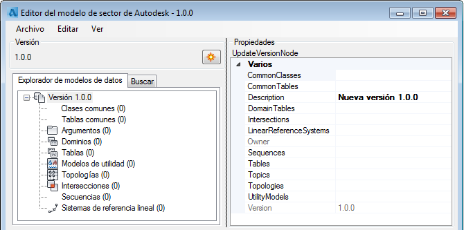 El Editor del modelo de sector admite otras versiones de esquemas.