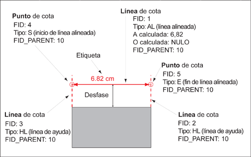 Modelo de datos: componentes de una cota alineada.