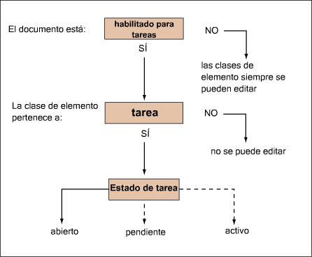 Las clases de elemento habilitadas para tareas solo pueden editarse si pertenecen a la tarea actual. Una tarea solo puede procesarse si su estado es Abierto.