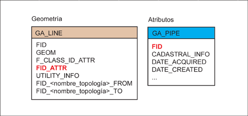 Puesto que la geometría y los atributos se almacenan por separado, una clase de elemento de geometría como un punto puede representar a varias clases de elemento de atributo, como las armaduras y los accesorios de tubería. Para los elementos de línea existen dos métodos de división de línea diferentes: la división suave y la división dura.