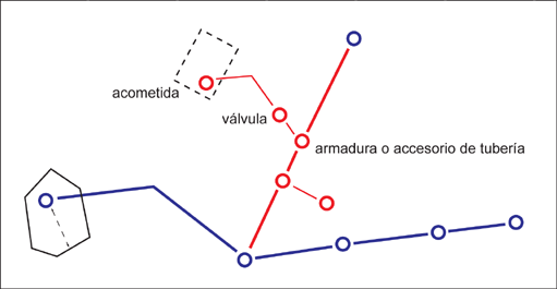 Puede digitalizar una armadura en la tubería principal, en la posición en la que la acometida se conecta a dicha tubería, y añadir una válvula y un contador a la tubería.
