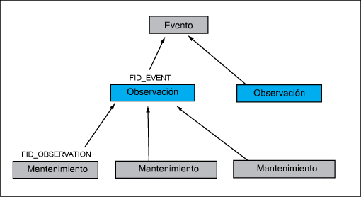 EL_EVENT. Almacena eventos, como las inspecciones, e incluye el tipo del evento y la información de contacto. Un evento puede estar relacionado con varias observaciones y una observación puede estar relacionada con varias actividades de mantenimiento. Por ejemplo, en el caso de un evento de avería, la observación puede ser información de inspección y el mantenimiento, información de reparación. Tabla relacionada: EL_CONTACT |