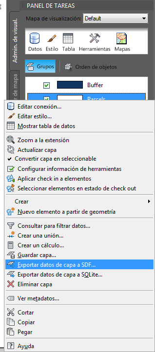 Hacer clic con el botón derecho en la capa Parcels para exportarla.