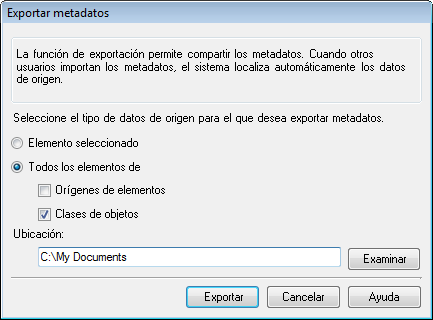 Ha generado metadatos que incluyen información de clase de objeto . Ha exportado los metadatos de las clases de objetos.