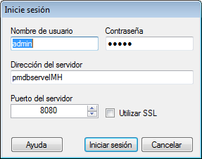 - Cuando se muestre el cuadro de diálogo de inicio de sesión en Primavera, escriba su nombre de usuario, contraseña y la dirección del servidor.