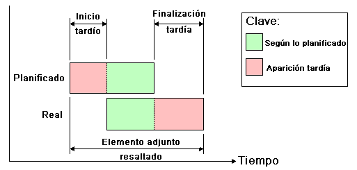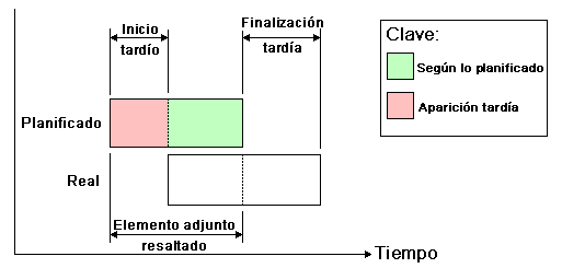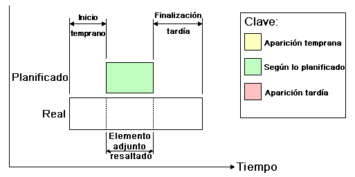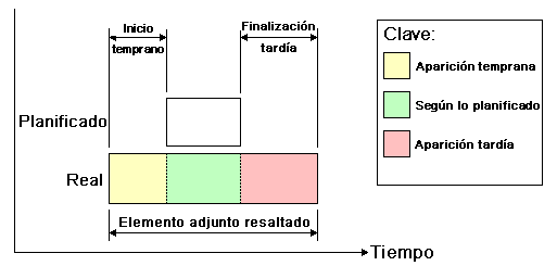 Área Vista. Cada vista reproducirá la programación representando las relaciones entre las fechas planeadas y las reales: