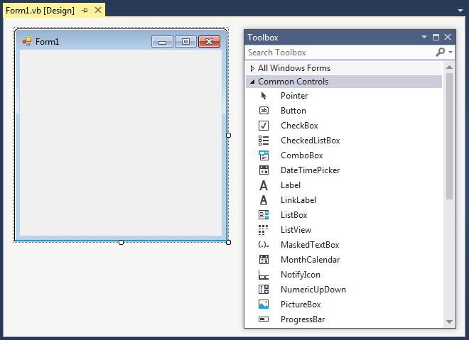 To add a control to a form, click the desired control from the Toolbox window to activate the tool, and then click over the form in the Windows Form Designer to place and size the control. You can align controls with a grid or other controls by setting the appropriate setting form from the General category under the Windows Form Designer folder in the Options dialog box. The General category allows you to control other grid related settings such as size and layout mode.