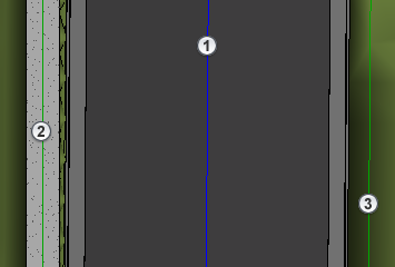 Aunque las familias de calles pueden incluir canalones y bordillos asociados que siguen la calle, no incluyen aceras. Añada aceras por separado con la herramienta Locate Sidewalk (Buscar acera).