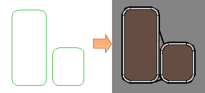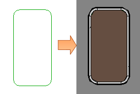 Para una isla de aparcamiento, cree un bordillo que utiliza un bucle cerrado en su línea anfitriona. Al generar la isla, Site Designer añade una superficie topográfica de relleno o de recubrimiento.