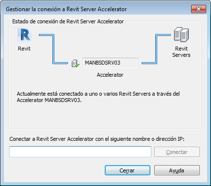 Para comprobar el estado de Revit Server Accelerator o cambiar un ejemplar de Revit Server Accelerator