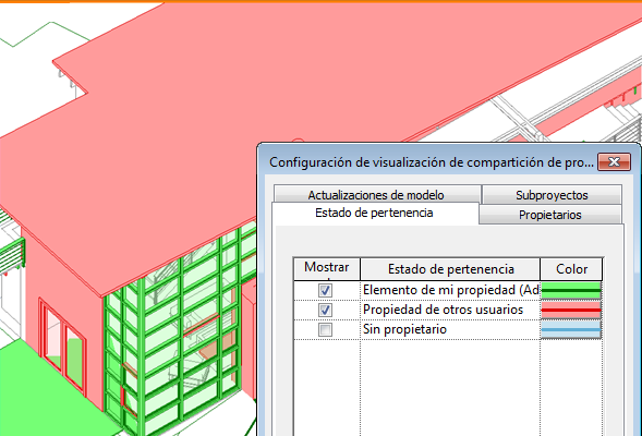 El color especificado para el estado de pertenencia del propietario correspondiente se muestra en el modelo.