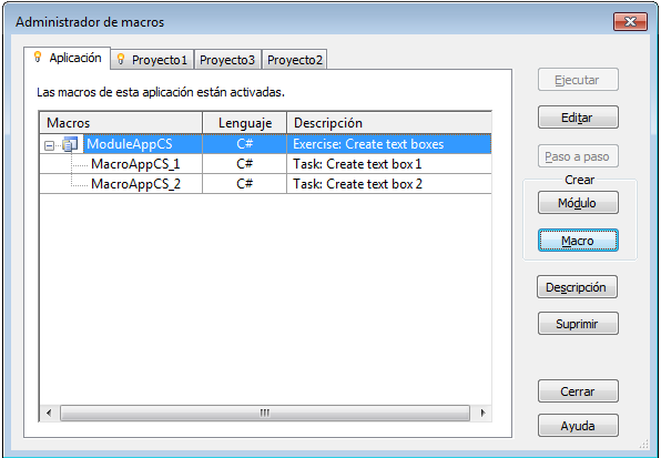Un módulo es un grupo de macros. Las macros pueden ser independientes dentro del módulo en que se ejecutan, así como compartir código y utilidades. Se organizan en el Administrador de macros bajo el módulo principal.