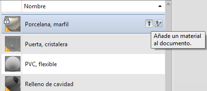 Para añadir un material al proyecto actual, localice el material en una biblioteca existente y utilice uno de estos métodos: