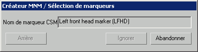 Pour déterminer la façon dont les noms des marqueurs provenant des données entrantes sont convertis conformément aux conventions de dénomination CSM, vous avez besoin d'un fichier MNM (Marker Name). Vous pouvez soit charger un fichier MNM existant, soit créer un fichier à partir de la boîte de dialogue Créateur MNM/Sélection de marqueurs.