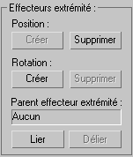 - Crée ou supprime des effecteurs d'extrémité de position. Si le noeud a déjà un effecteur d'extrémité, seul le bouton Supprimer est disponible.