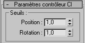 - Affiche le panneau déroulant des paramètres Info clé pour un effecteur d'extrémité de position. Cette option est désactivée si aucun effecteur d'extrémité de position n'est affecté. (Les paramètres Info clé sont les mêmes que ceux utilisés pour les contrôleurs de position.)