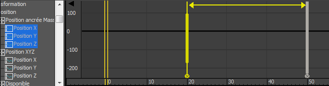 Cela supprime l'influence de la synchronisation sur l'animation des pistes mises en surbrillance. La synchronisation est conservée, mais ne peut pas avoir d'incidence sur le mouvement de l'objet. Les courbes de l'objet disparaissent de la fenêtre Clé afin d'indiquer que l'animation ne peut plus être modifiée avec cette resynchronisation.