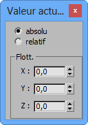 L'Editeur de valeur actuelle permet d'agir sur les valeurs des clés d'animation figurant dans la vue piste en entrant des valeurs numériques.