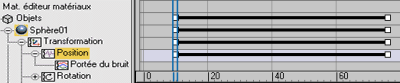 Comme l'option Respecter intervalle animation est activée, la sphère se déplace uniquement dans l'intervalle d'animation de la piste.