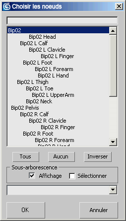 - Cette liste présente les jeux de sélections nommées. Le fait de choisir un jeu dans cette liste sélectionne tous les membres correspondants dans la liste Noeuds.