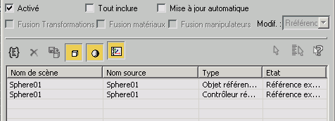 Pour supprimer un contrôleur de référence externe, vous pouvez soit cliquer à l'aide du bouton droit de la souris sur l'entrée dans la liste des entités références externes et sélectionner Fusionner dans la scène à partir du menu contextuel, soit affecter un nouveau contrôleur de transformation à votre objet.