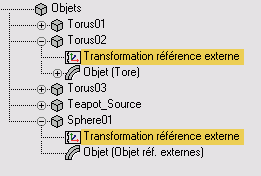 ![]() Position de transformation de l'objet référencée en externe. |