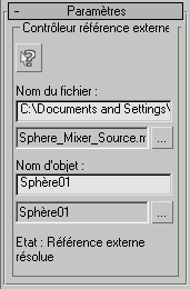 Ces commandes, identiques à celles du panneau déroulant Objet Xréf, vous permettent de modifier le chemin du fichier, le nom du fichier et le nom d'objet de la source du contrôleur de référence externe.