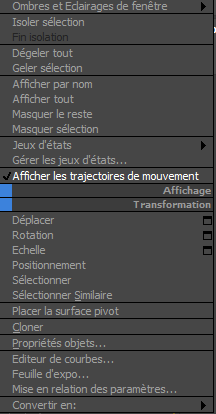 - Cliquez avec le bouton droit de la souris sur l'objet et sélectionnez Afficher les trajectoires de mouvement.