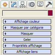 Le groupe de fonctions Affichage comprend des options qui permettent de masquer et de geler des objets. Ces techniques excluent les objets des autres méthodes de sélection et permettent ainsi de simplifier des scènes complexes. Les objets gelés demeurent visibles mais les objets masqués ne le sont pas.
