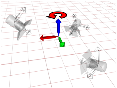 Avec l'option Centre sélection, un système de coordonnées moyenné est utilisé pour appliquer une rotation aux objets.