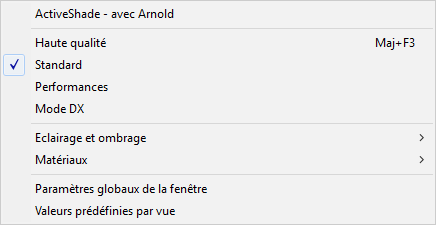 Remarque : Ces options ont une incidence uniquement sur l'affichage des fenêtres ; elles n'ont aucun effet sur le rendu de la scène.