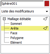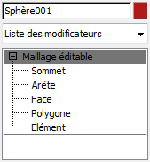 Pour accéder à un niveau de sous-objet particulier, cliquez sur le signe plus (+) pour développer la hiérarchie, puis sélectionnez le niveau requis. Les contrôles associés à ce niveau de sous-objet apparaissent au sein de groupes de fonctions, sous la zone d'affichage de la pile