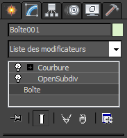 Lorsqu'un bouton de modificateur est visible, il vous suffit de cliquer dessus pour inclure le modificateur dans la pile. Les modificateurs espace objet s'affichent au-dessus de l'objet ou du modificateur sélectionné. En revanche, les modificateurs espace univers apparaissent en haut de la pile.