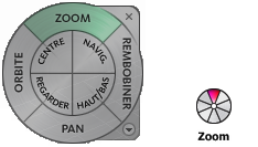 La roue de navigation intégrale associe les outils de navigation qui se trouvent sur les roues Vue d'objet et Visite de bâtiment.