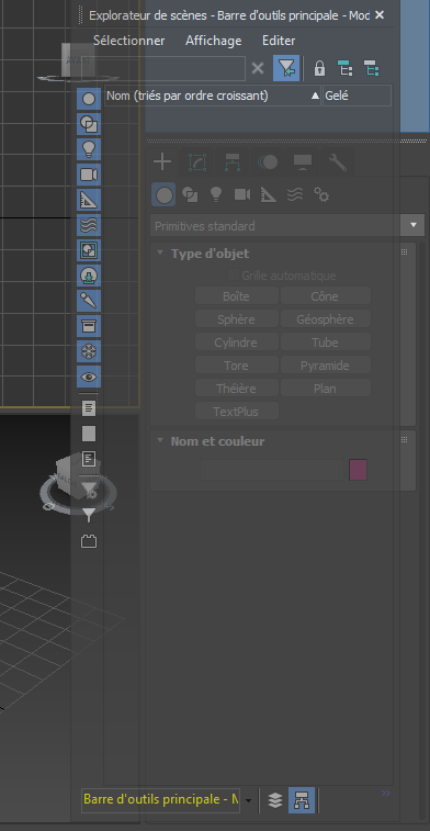 Empilement de l'explorateur de scènes au-dessus du groupe de fonctions de commandes