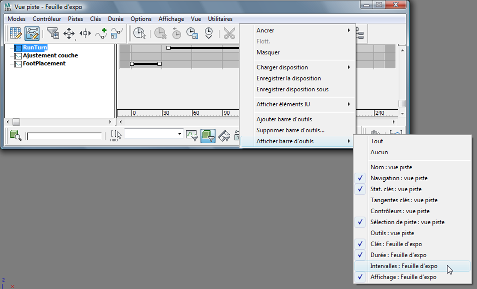 Intervalles : Feuille d'expo. 3ds Max ouvre la barre d'outils Intervalles.