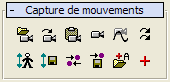 Les outils figurant dans le panneau déroulant Capture de mouvements du groupe de fonctions Mouvement sont généralement utilisés pour éditer des données brutes de capture de mouvements. Vous pouvez également charger des fichiers BIP standard en utilisant la commande Charger le fichier de capture de mouvements. Vous pouvez par exemple effectuer cette opération si vous souhaitez réaliser une animation en boucle.
