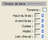 - Définit le nombre de torsions de liens dans les avant-bras. Valeur par défaut : 0. Intervalle : de 0 à 10.