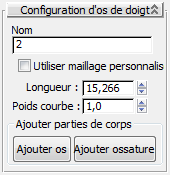 Ce panneau déroulant contient les paramètres pour les os des doigts.